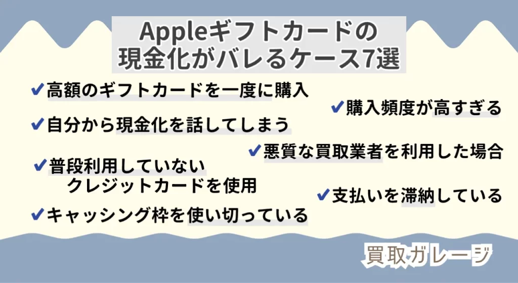 Appleギフトカードの現金化は基本的にリスクが低く、違法ではありません。ただし、購入の仕方や利用方法によってはバレてしまう可能性があるため注意が必要です。信頼できる買取業者を選び、慎重に取引を行いましょう。