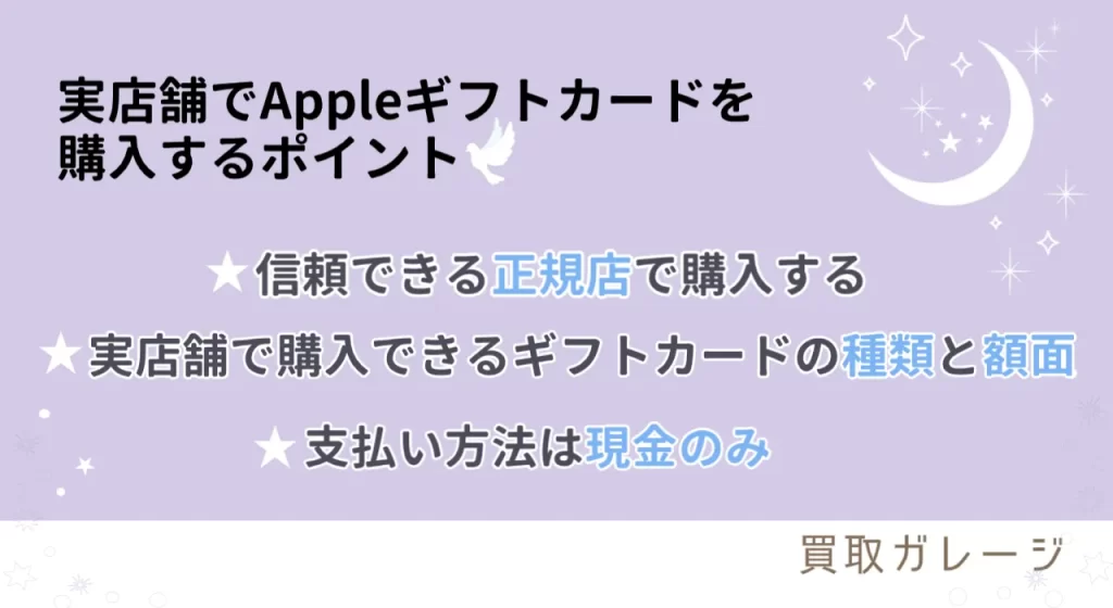 Appleギフトカードは、身近なコンビニや家電量販店など実店舗でも販売されているので手軽に購入が出来ますが、オンラインサイトと違ったポイントがいくつかあるので購入前にチェックが必要です。