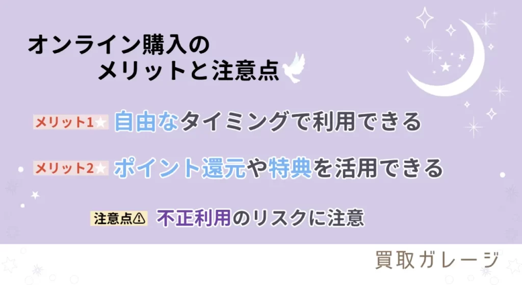 特にオンライン購入は利便性が高く、いつでも自分のタイミングで利用ができるため、急なギフトにも対応可能です。また、購入時には正規販売店を利用し、不正利用やトラブルを防ぐための注意点を守りましょう。